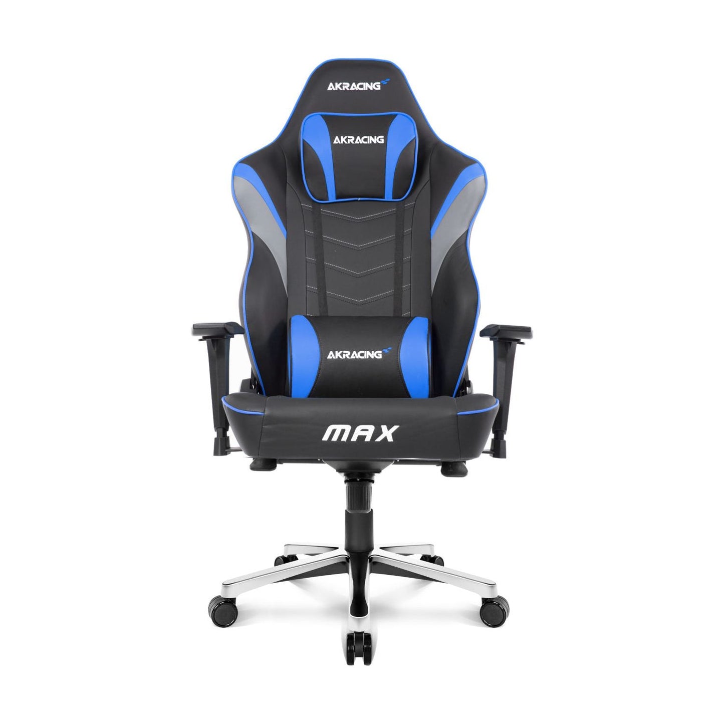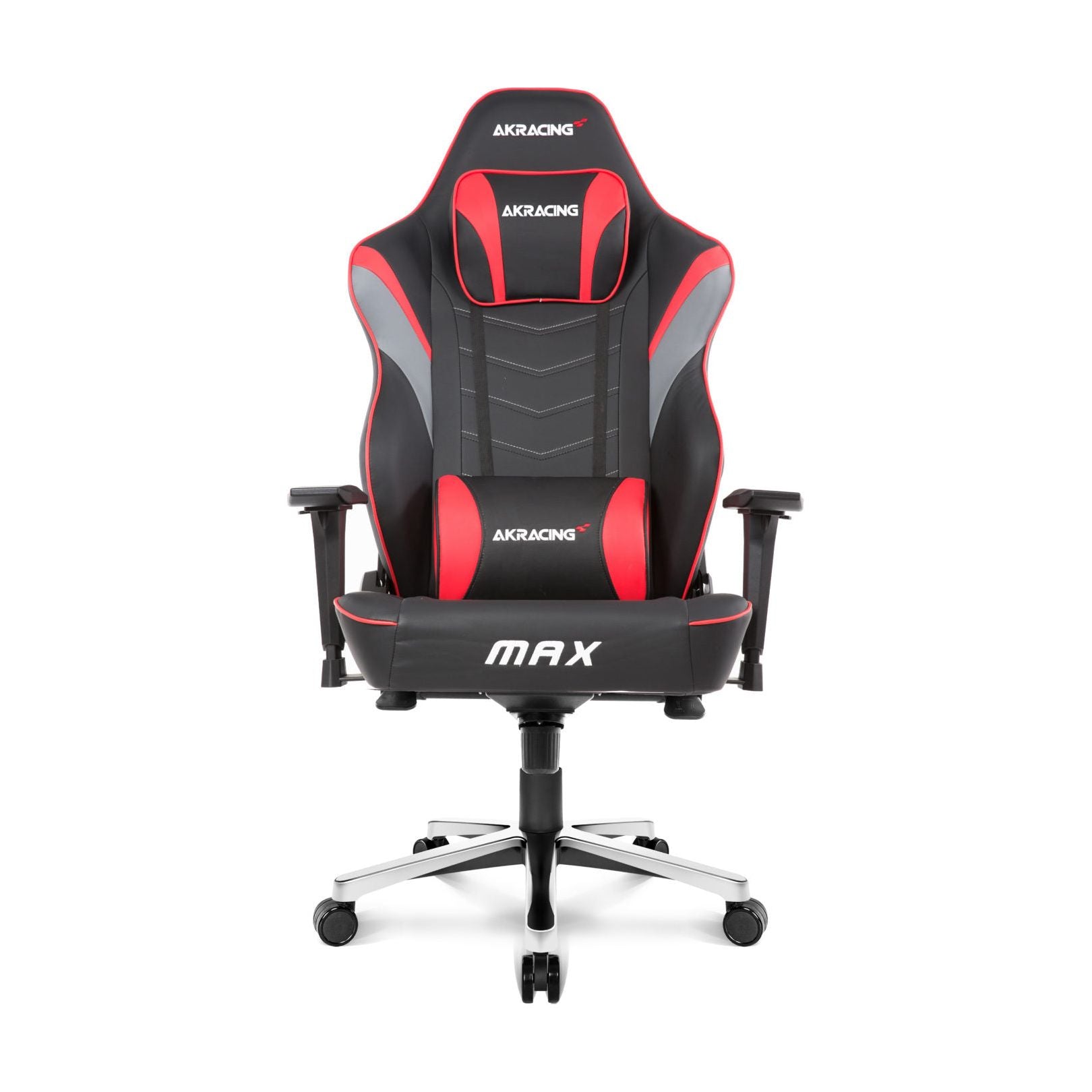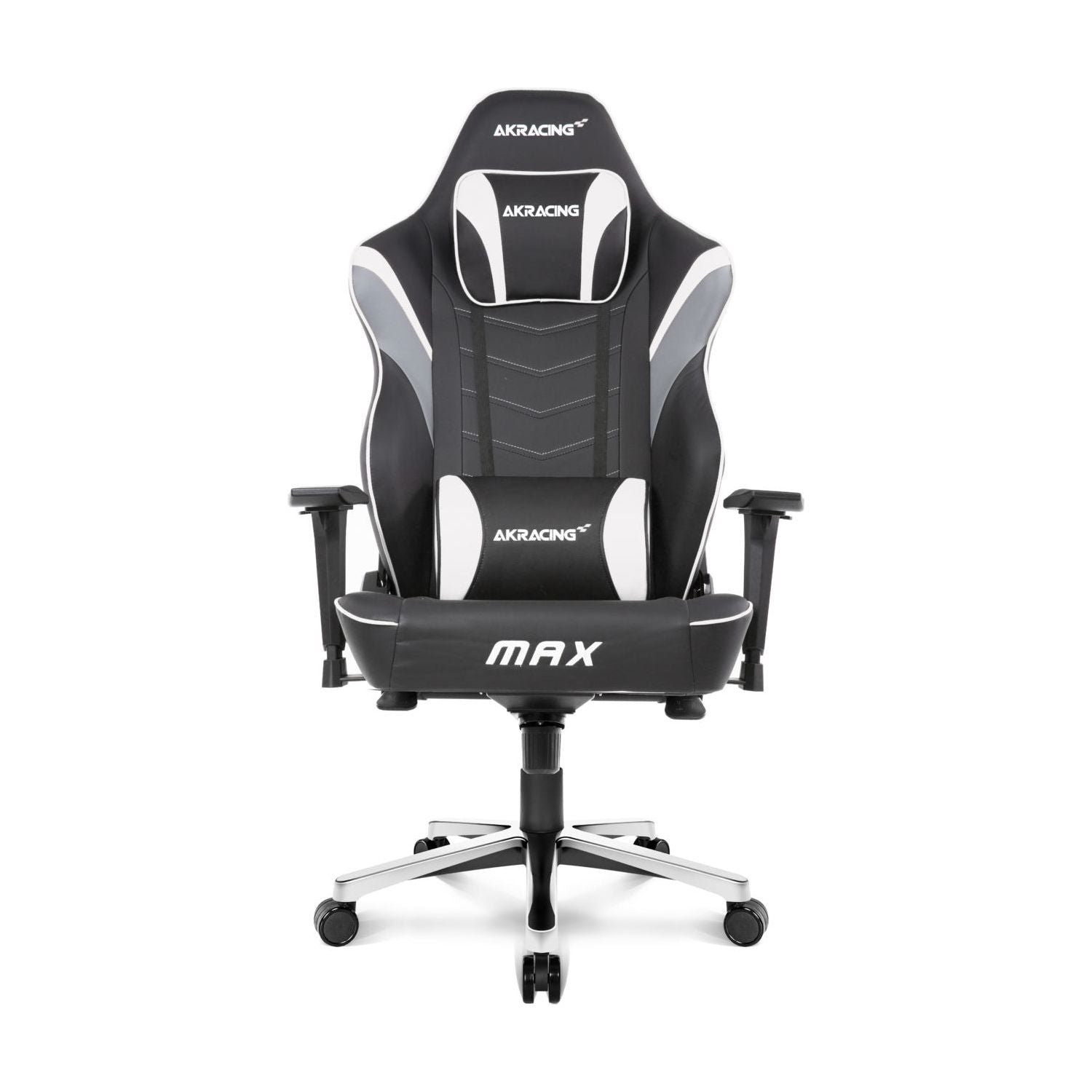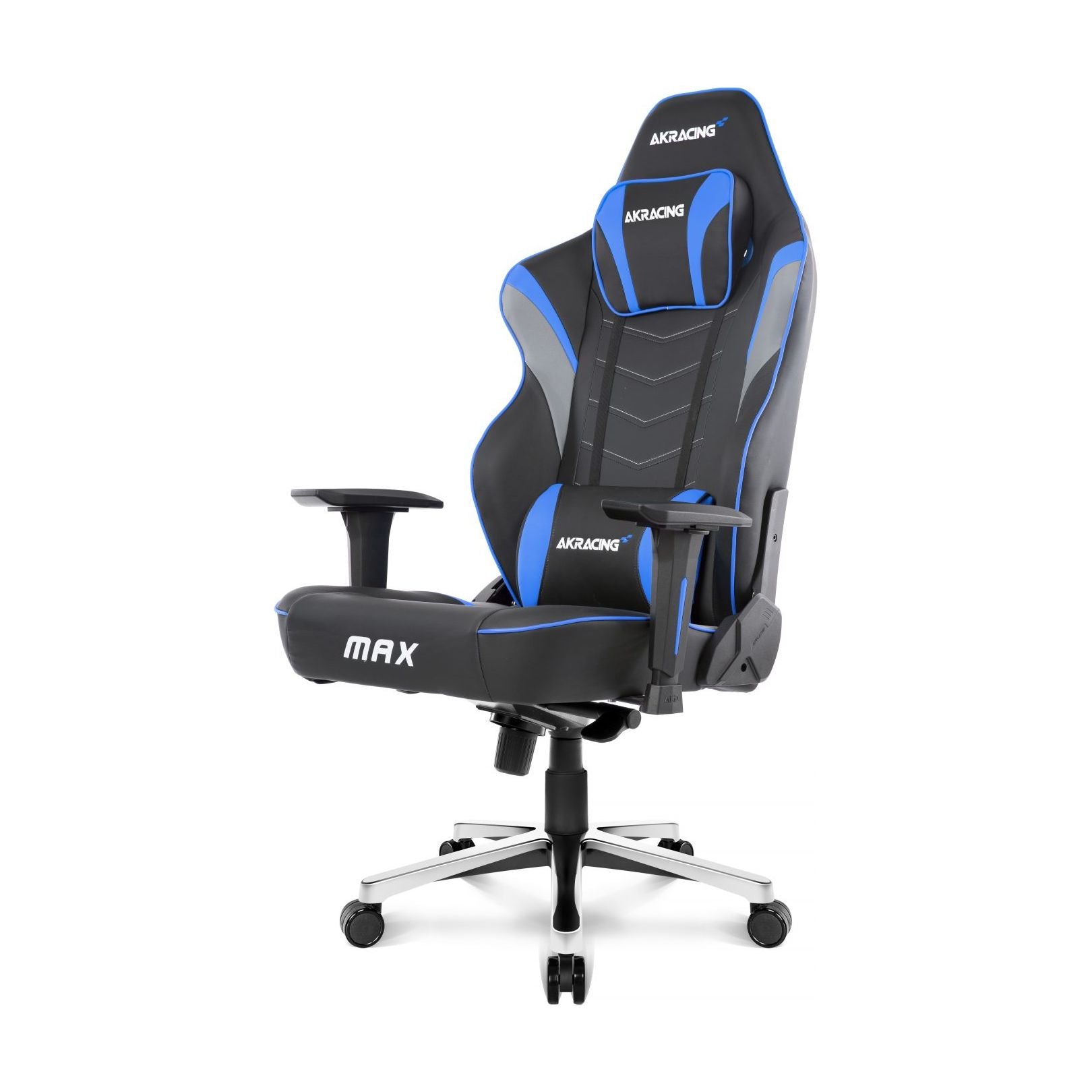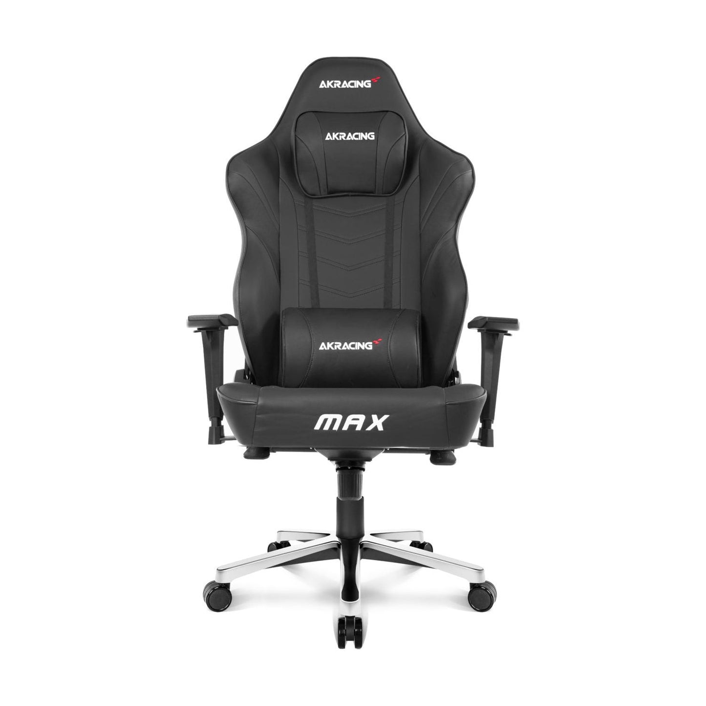 Just like all other AKRacing chairs, Max boasts top-quality pleather upholstery, all-metal frame, 55 kg/m3 cold-cure foam padding and adjustable headrest and lumbar support pillows for comfortable seating. All of that functionality sits atop a five-star aluminum base, steel frame, and large 2.5-inch casters.