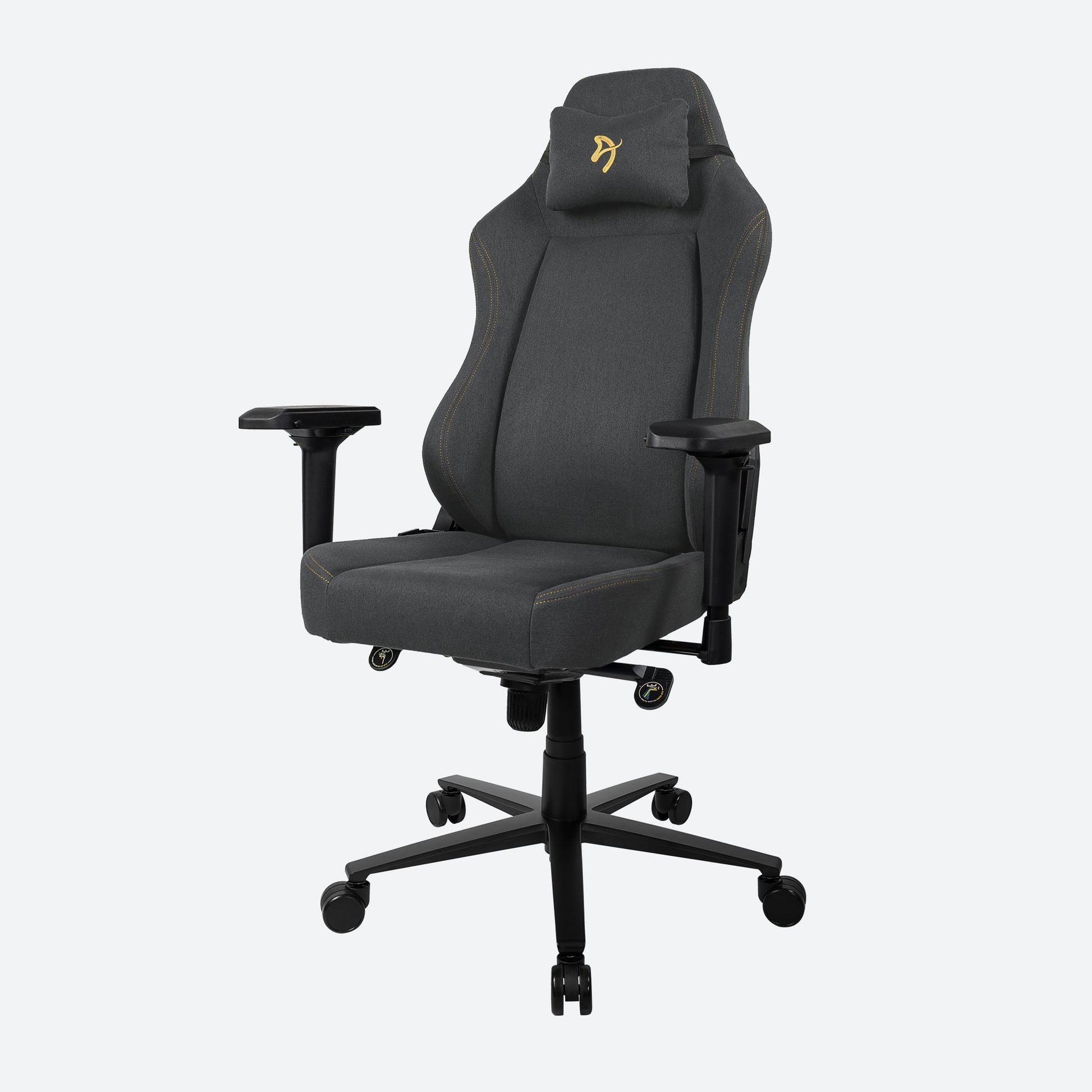 High end Furniture Fabric chair for max comfort with a Head Pillow, built in Lumbar adjustment and 4D armrests.