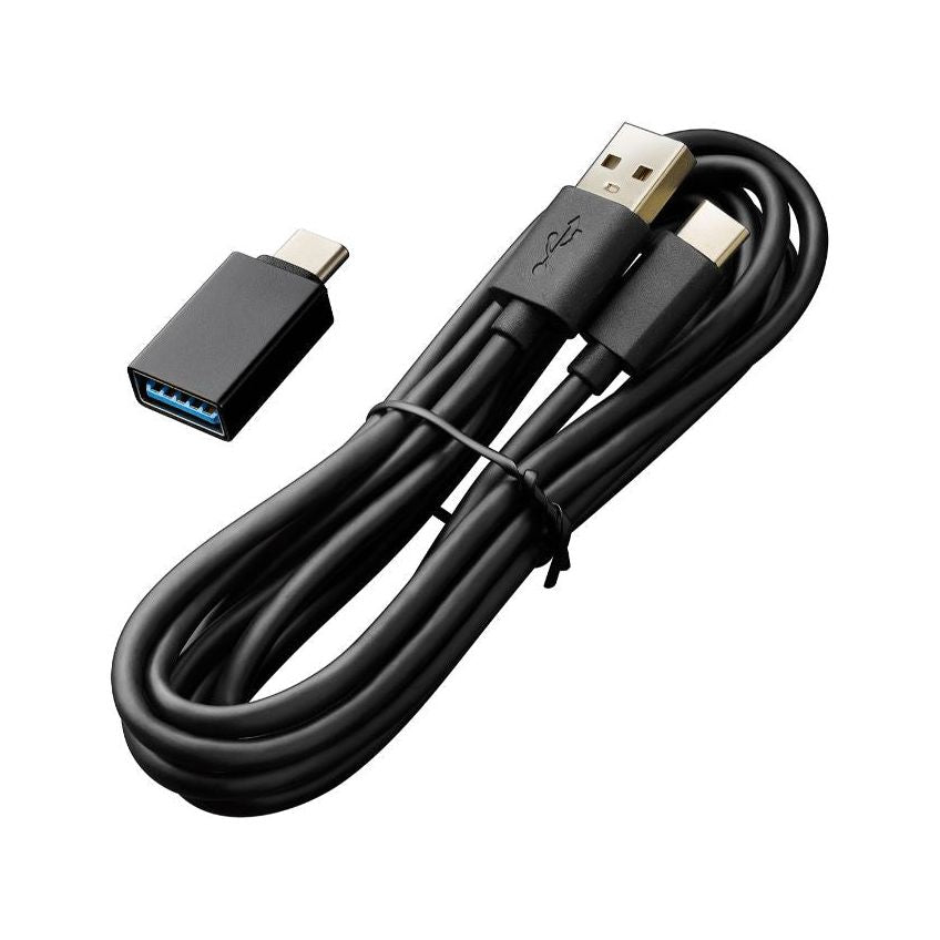 - Accessories included: 3/8"-16 to 5/8"-27 threaded adapter, desk stand, 2.0 m (6.6') USB-C to USB-A cable, USB-A to USB-C adapter.