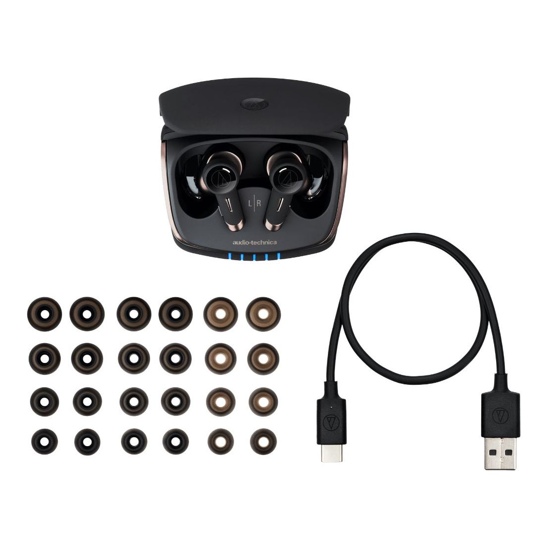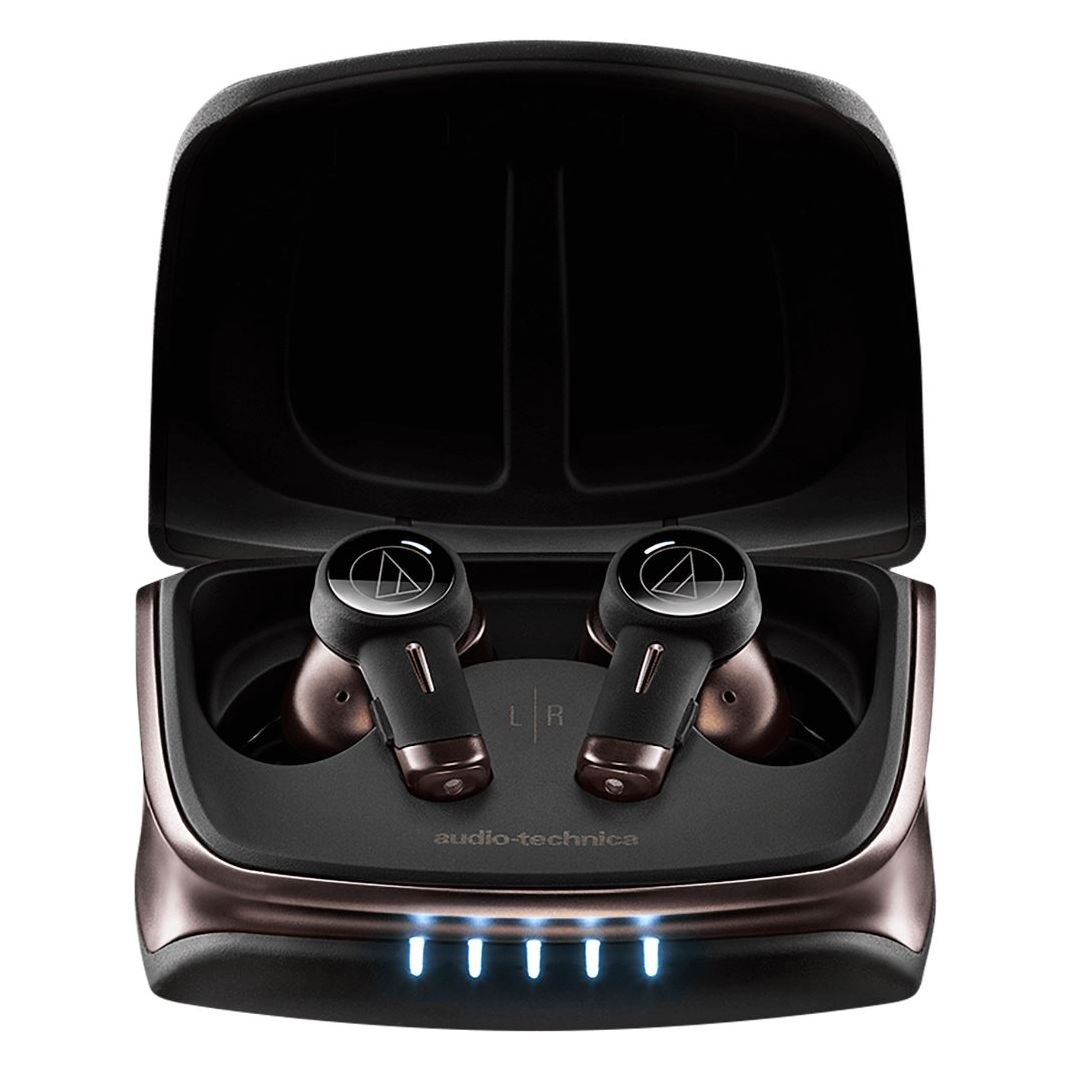 The ATH-TWX9 truly wireless earbuds offer the freedom to customize your sound space for an advanced audio experience. These headphones create an immersive audio experience and feature digital hybrid noise canceling technology. With unique features including deep-UV sterilization, 360 Reality Audio for a realistic 3D sound stage, and Snapdragon Sound™ platform for higher quality music, video, and calls, the ATH-TWX9 set themselves above the rest as the best truly wireless headphones.