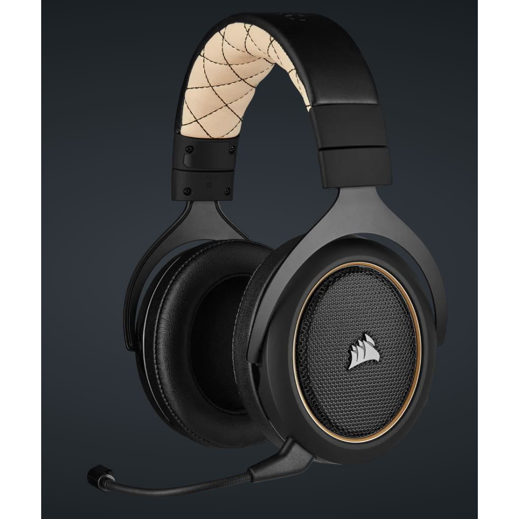 The CORSAIR HS70 PRO WIRELESS Gaming Headset delivers both comfort and quality with memory foam ear pads, custom-tuned 50mm neodymium audio drivers, and low-latency 2.4GHz wireless.