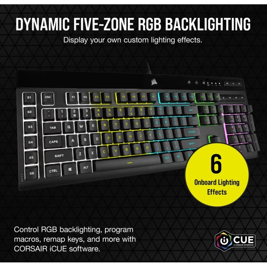 The CORSAIR K55 PRO LITE RGB Gaming Keyboard lights up your desktop with five-zone dynamic RGB backlighting and powers up your gameplay with six dedicated macro keys.