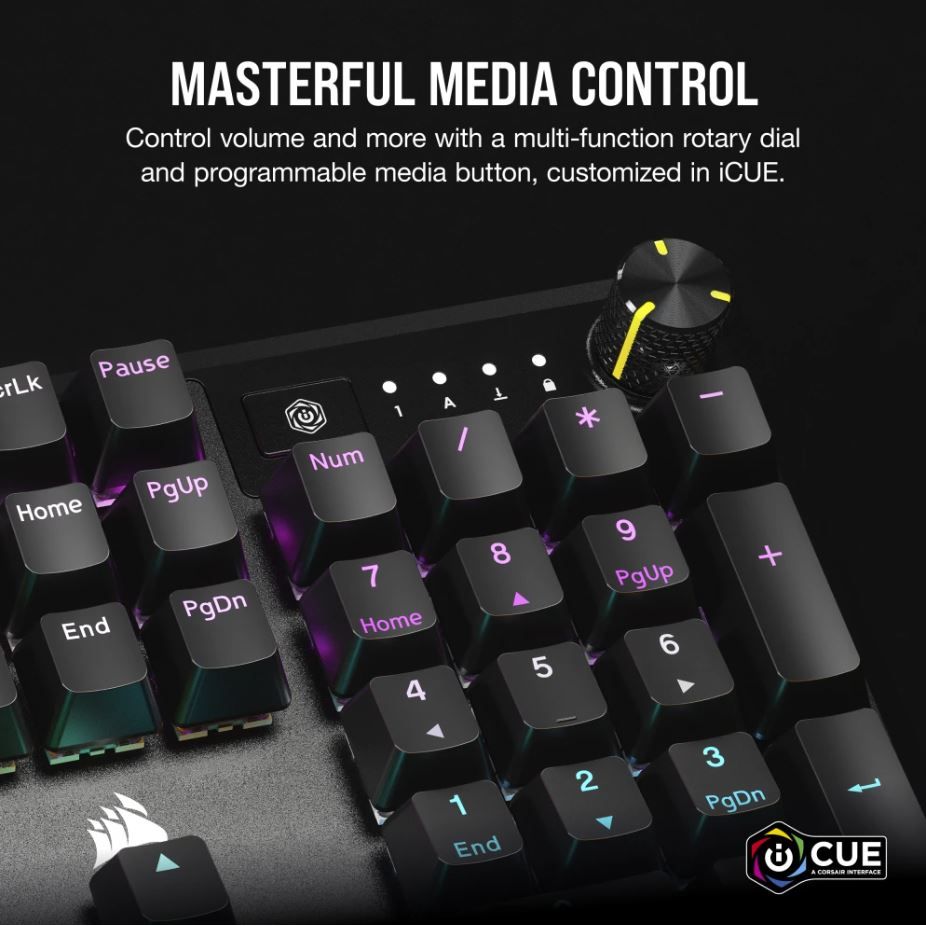 The CORSAIR K70 CORE gaming keyboard empowers your best play and makes gaming and typing amazing, with effortless media control and CORSAIR MLX Red linear switches.