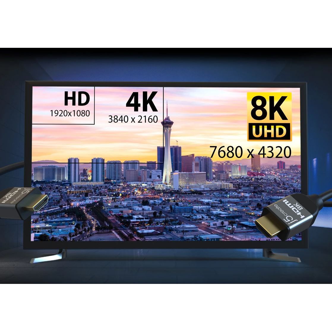 The JDC53 HDMI™ Ultra High Speed Certified Cable supports resolutions up to 8K @ 60 Hz and advanced audio formats, providing a theater-quality entertainment experience. This high-performance HDMI™ ULTRA Certified cable has a bandwidth up to 48 Gbps for smooth and seamless motion, supports HDR (High Dynamic Range) for enhanced video images, and features eARC (Enhanced Audio Return Channel) for simplified connectivity and lossless audio. To accommodate the latest standard, this high-speed HDMI™ cable not only works with the latest hardware, including the PlayStation® 5, Xbox™ Series X, and more, it is also designed to reduce interference with nearby wireless devices ensuring a stable connection and optimized viewing experience.